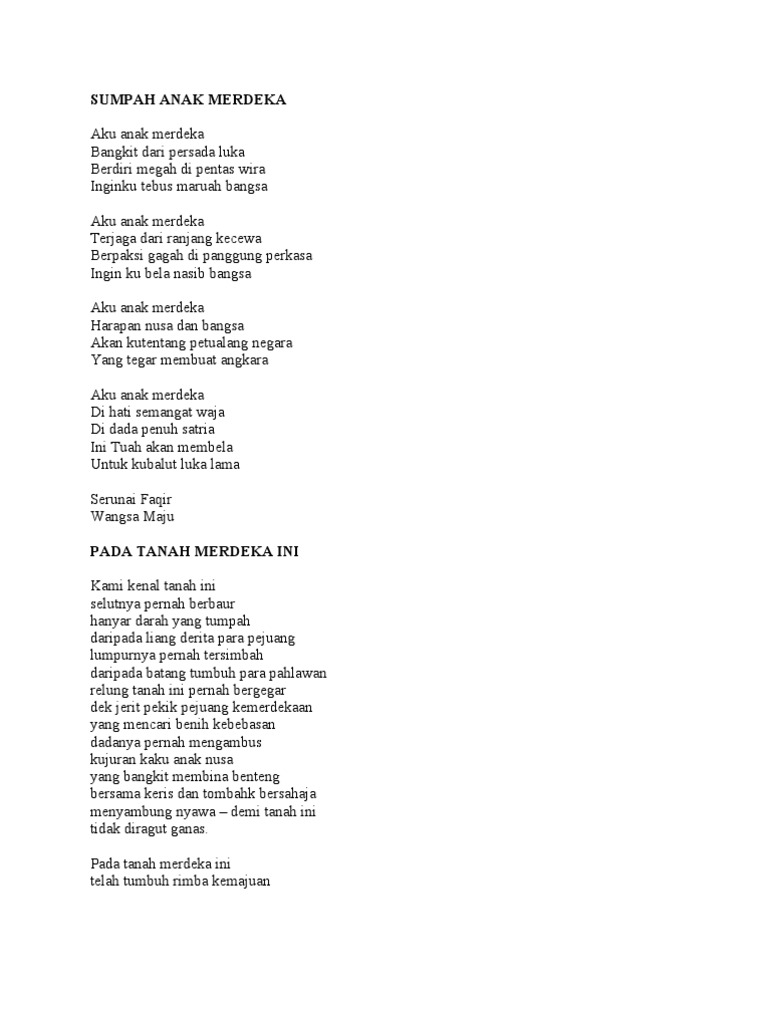 Sajak Negaraku Merdeka Nukilan Ds Zambry